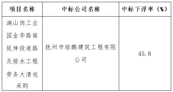 依据采购计划,江西子翔建筑工程有限公司就渊山岗工业园金华路南延伸段道路及排水工程劳务大清包采购(采购编号:DXGCT-ZX-2025-016)进行公开招标,经过评审委员会就投标方的资质、报价及产品质量等方面进行了综合评审,按照招标文件的评标办法确定,最后经招标采购小组确定中标结果如下: